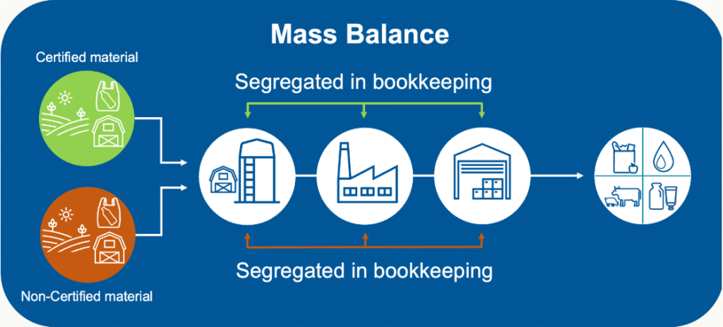 The ISCC PLUS mass balance approach ensures that the amount of sustainable material entering a production process equals the amount exiting. This method allows for mixing with non-sustainable material while maintaining accurate records. The mass balance approach requires precise bookkeeping. Companies must document the amount of sustainable material entering and leaving each stage of production to ensure that the sustainable output matches the sustainable input.