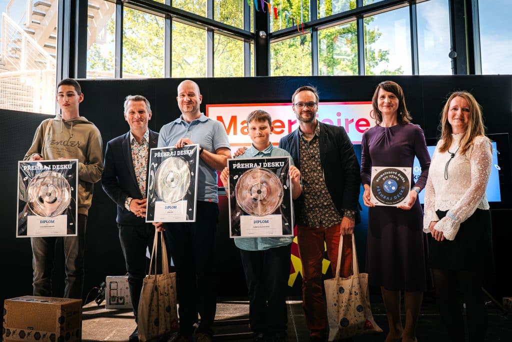 The creators of the six most awarded devices received valuable prizes and visited the Loděnice plant where our employees guided them through the record manufacturing process. The special jury prize, a Prusa 3D printer, was awarded to two teams: secondary school students from Stod near Plzeň and pupils from a club in Smilovice near Frýdek-Místek. Both groups used the 3D printer to create a wide range of custom parts for their competition record players.